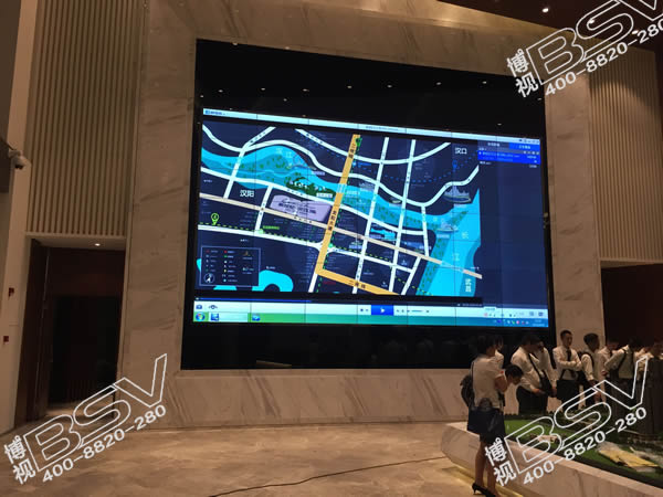 萬科售樓中心與武漢博視合作了一套大屏幕顯示系統(tǒng),該液晶拼接顯示系統(tǒng)采用46英寸超窄邊液晶拼接單元,7行7列,無縫拼接,該系統(tǒng)是以影音互動為核心的網絡顯示系統(tǒng),是可以將動畫、視頻、三維全景、圖像、音樂、文字等數(shù)字資源整合在一個交互系統(tǒng)中并通過大屏幕來展現(xiàn)這些信息。